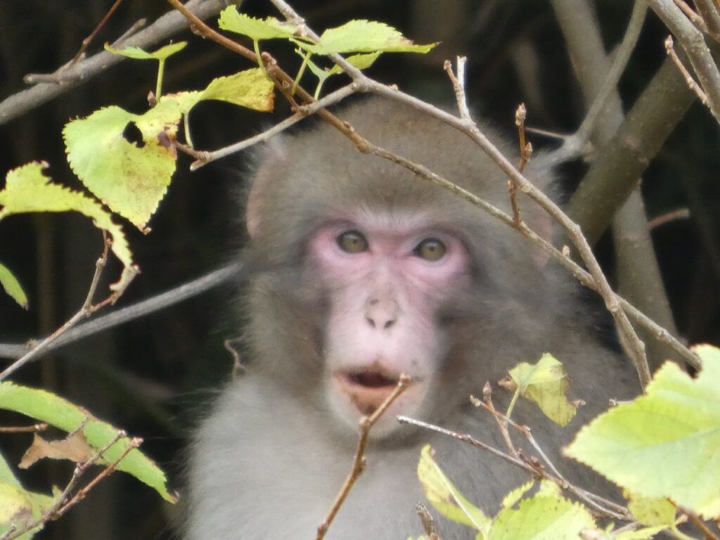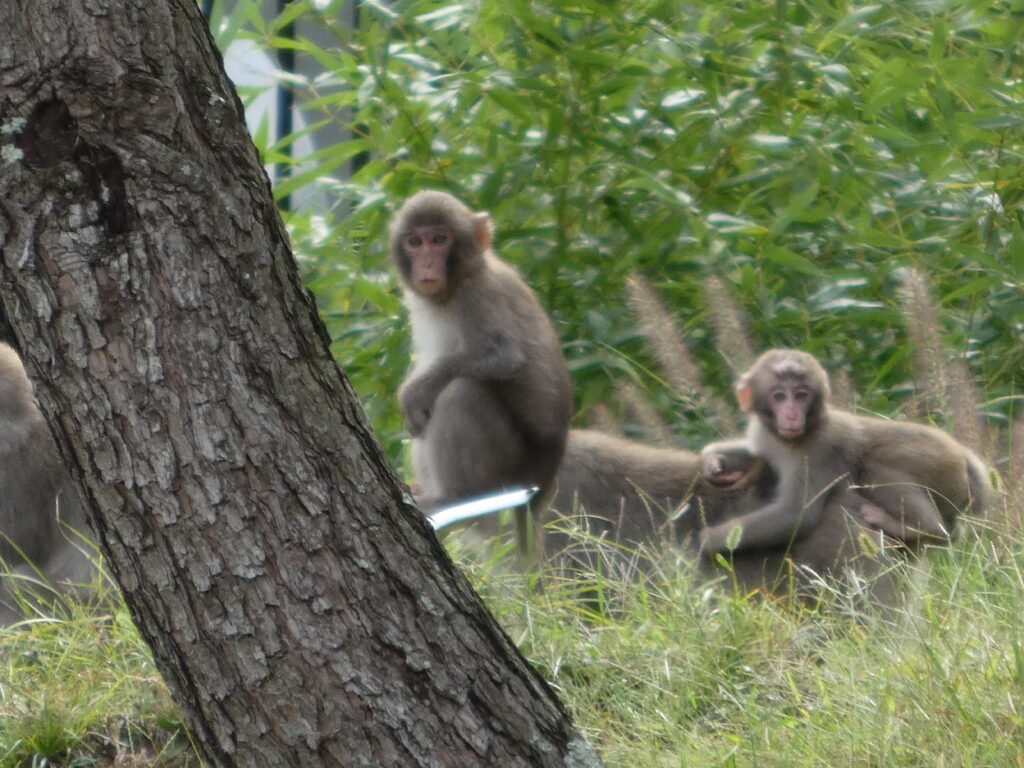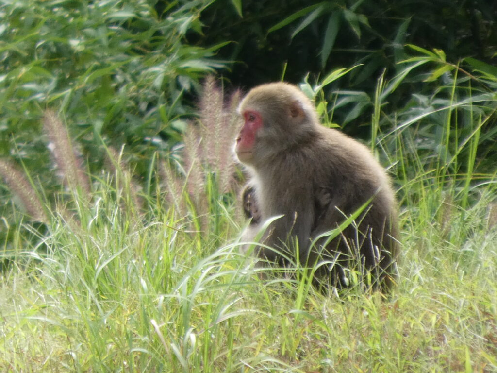 もみじロードでは、野生の猿の群れが道路を横切るタイミングで通過。すかさず停止し、先日購入したLUMIX FZ85D(ネオ一眼の望遠コンデジ)を試すことに。