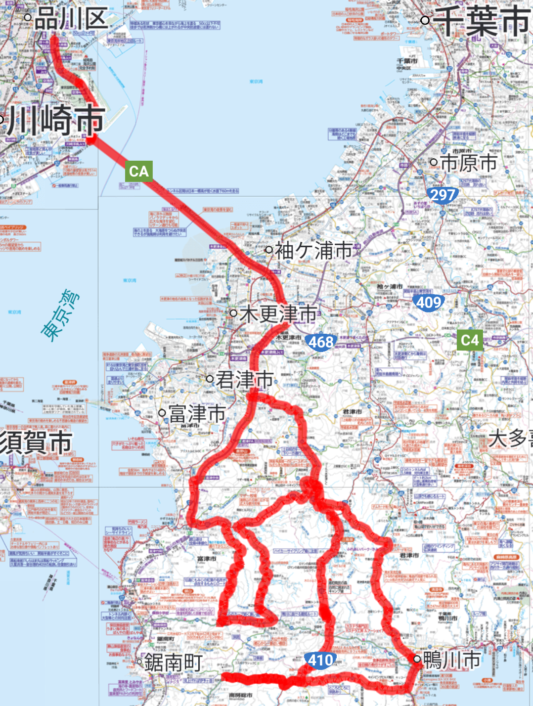 で、木更津JCTを右折して館山自動車道の君津ICから房総スカイラインへと進む行程です。