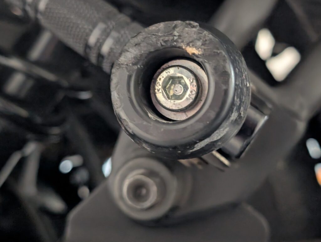 - 転倒するとバックミラーが緩むから、取付工具(六角スパナ2本)は必ず車載。